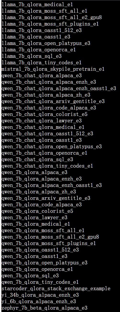 XTuner 提供多个开箱即用的配置文件,用户可以通过下列命令查看:
