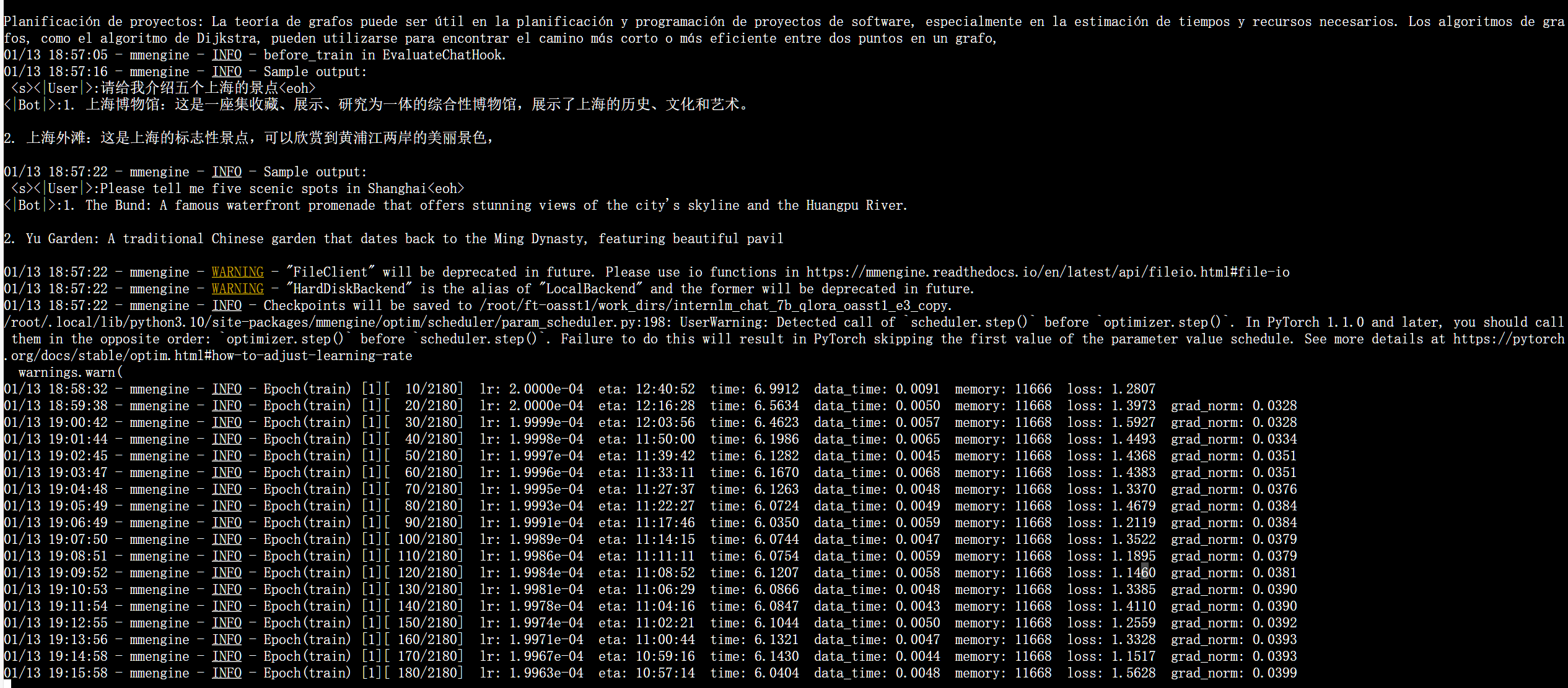 例如,我们可以利用 QLoRA 算法在 oasst1 数据集上微调 InternLM-7B: