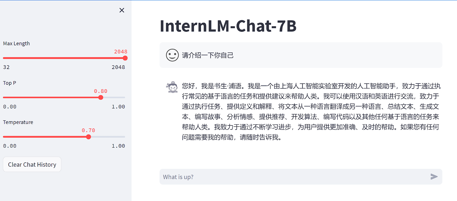 在加载完模型之后,就可以与微调后的 InternLM-Chat-7B 进行对话了